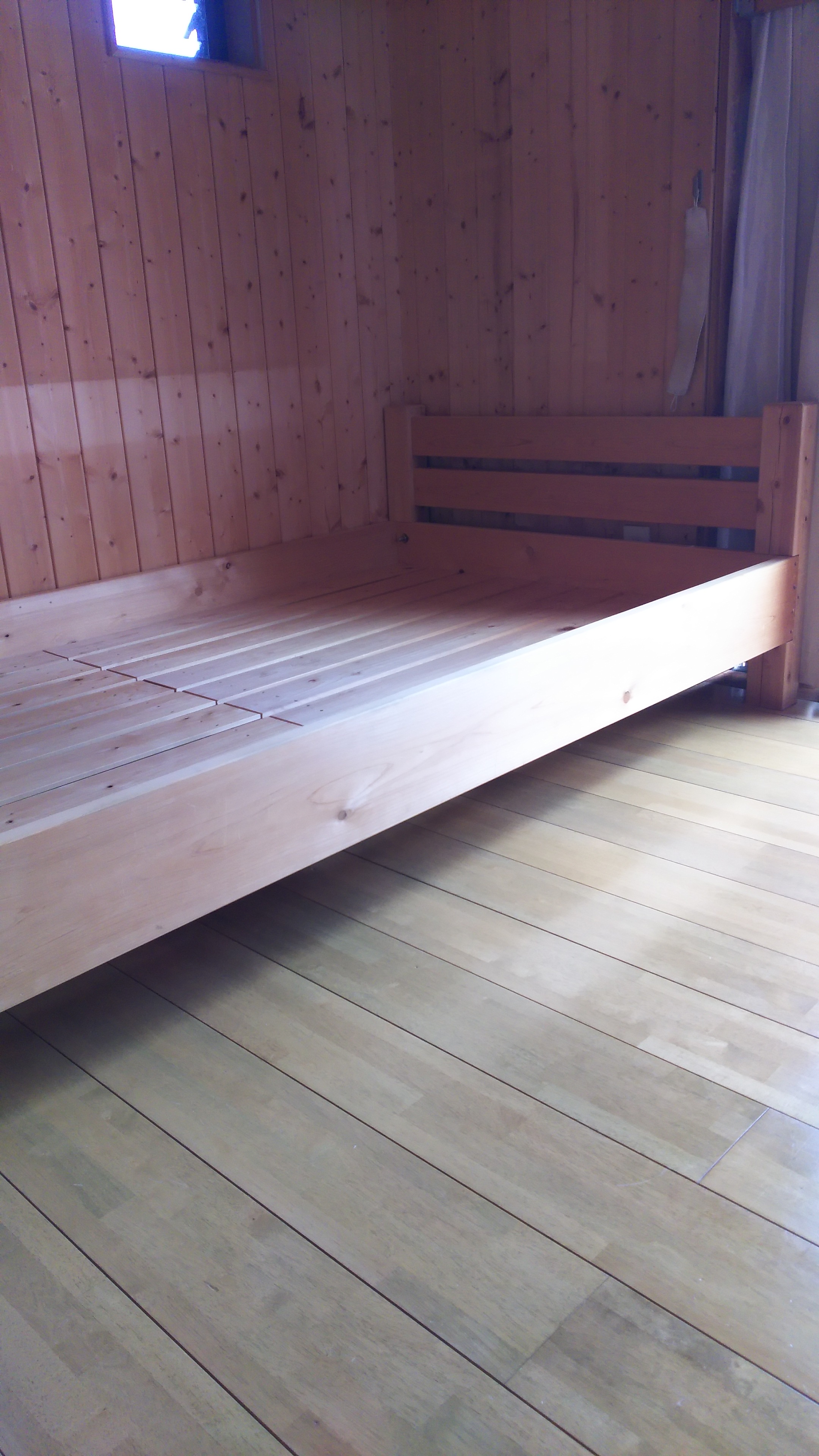 ベットの下に机を置いてあったけど、机を撤去しベットの足をカット。