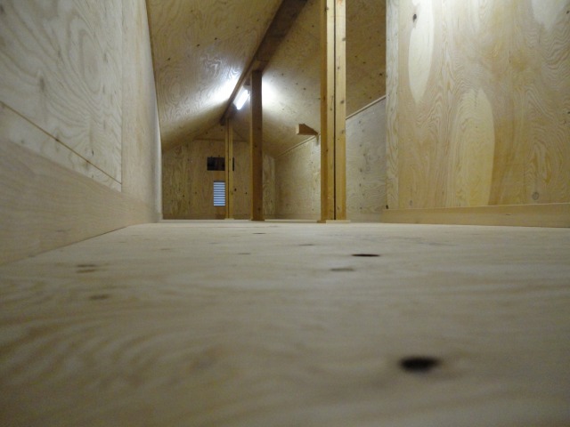 施主様のご要望で、天井・壁・床全てを合板でふさぐことになりました。